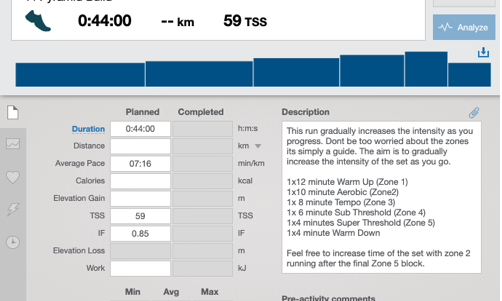 • Outline of training zones which means you know what you have to do each and every run